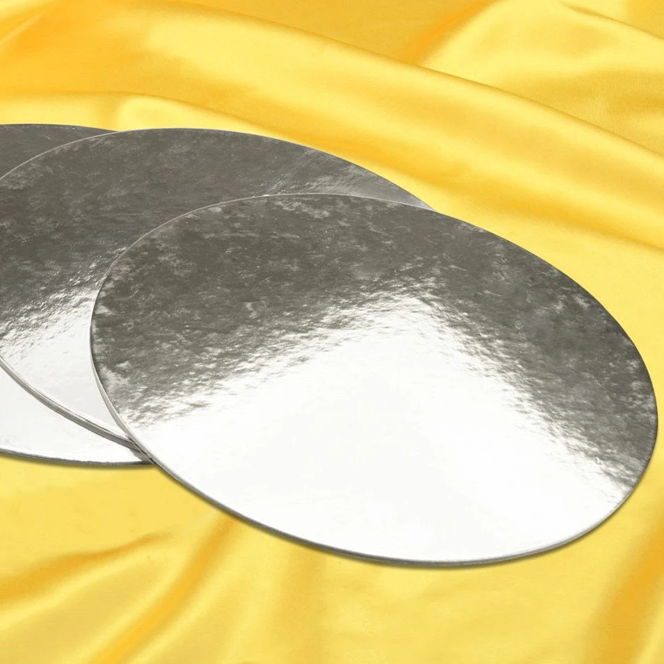 Stabile Tortenunterlage aus Karton mit glatter, silberner Beschichtung