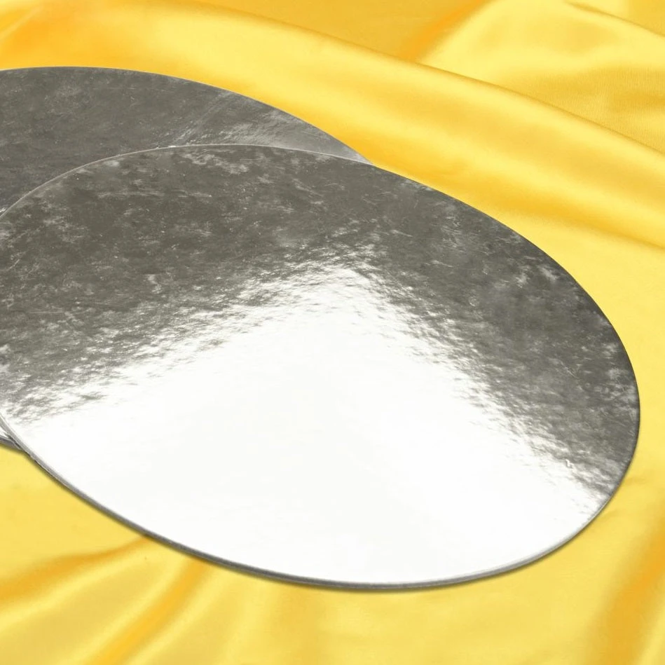 Stabile Tortenunterlage aus Karton mit glatter, silberner Beschichtung