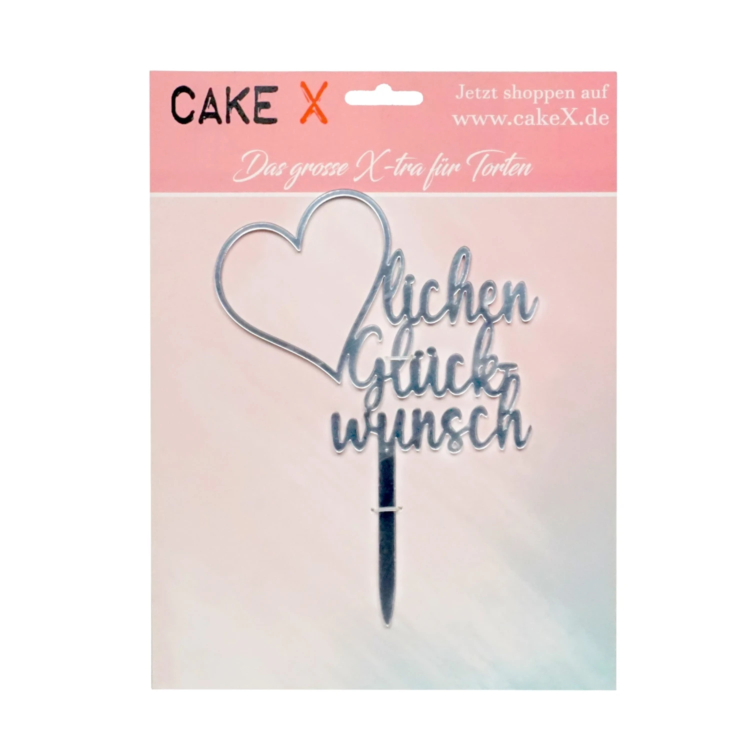 Der Kuchenstecker Herzlichen Glückwunsch mit großem Hert aus Acryl silber ist eine schöne Überraschung für einen lieben Menschen.