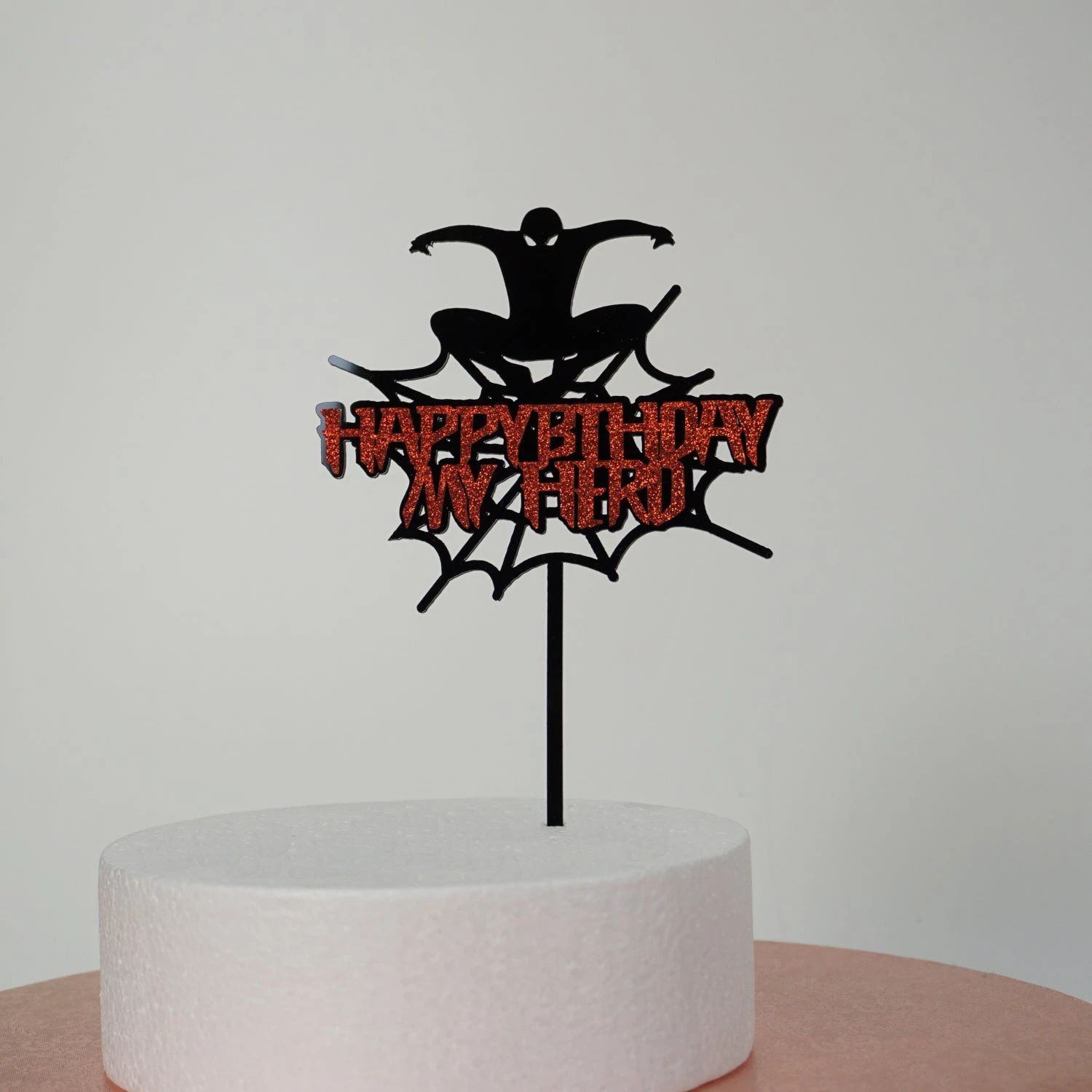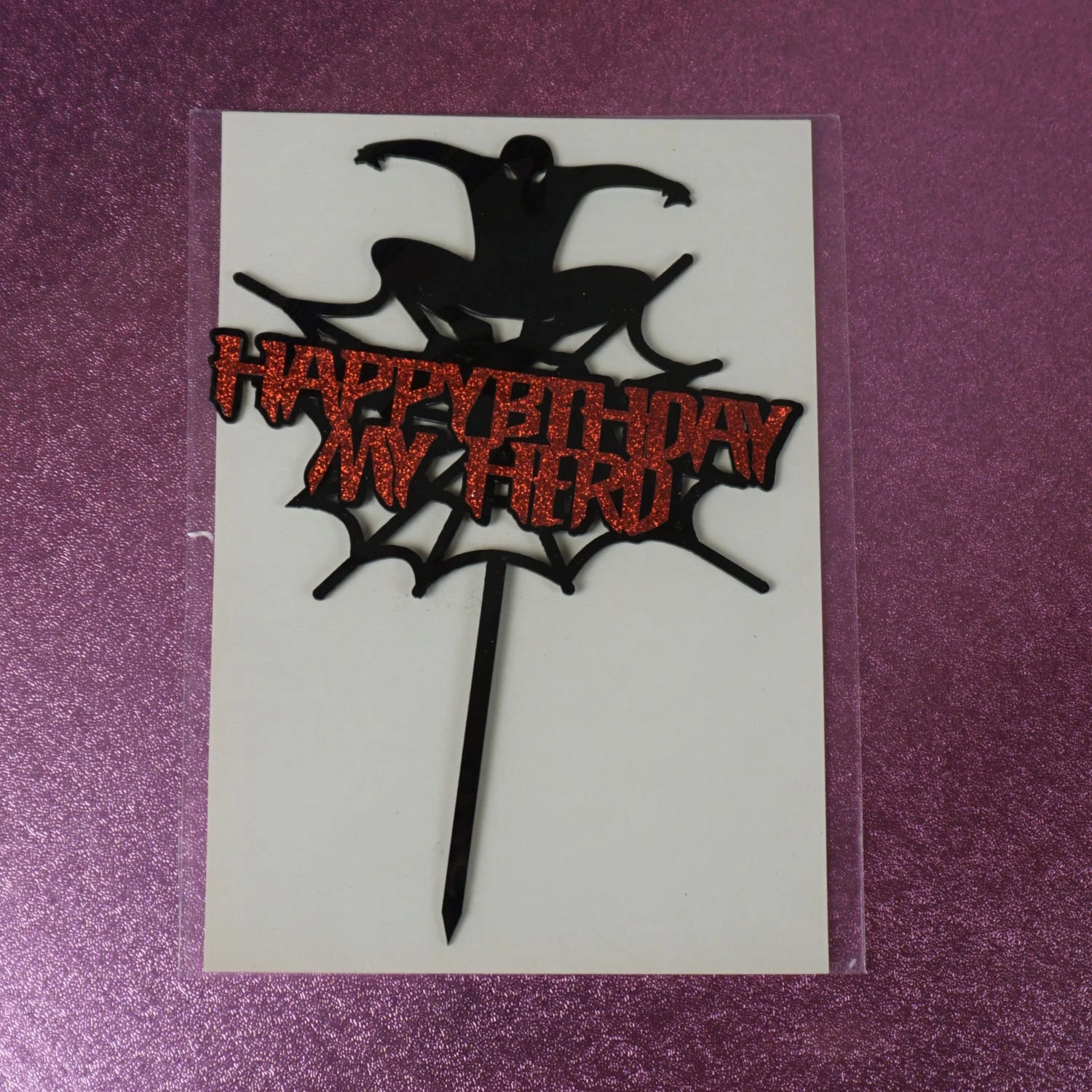 Du bist ein großer Fan von Spiderman und möchtest deine Leidenschaft für den Superhelden mit deinen Freunden teilen? Dann ist dieser caketopper genau das Richtige für dich! Er ist aus schwarzem Acryl gefertigt und zeigt die Silhouette von Spiderman in Aktion. Die rote Glitzerschrift verleiht dem caketopper einen besonderen Glanz und macht ihn zum Blickfang auf deiner Torte. Ob zum Kindergeburtstag oder einfach nur zum Spaß, dieser caketopper ist ein Muss für alle Spiderman-Liebhaber. Bestelle ihn jetzt und verwandle deine Torte in ein Abenteuer!