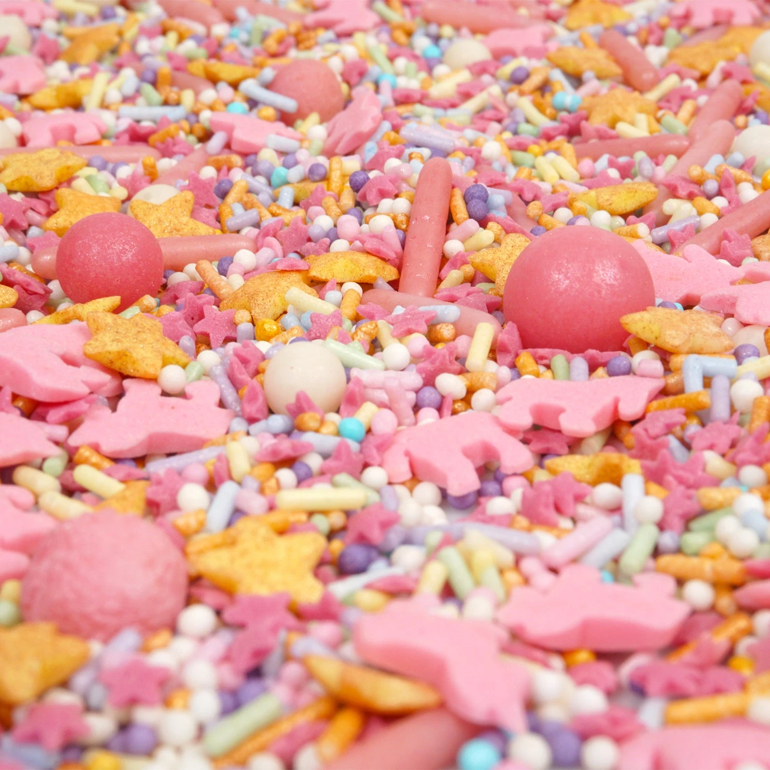 Dekorative Zuckerdekor-Mischung in den Hauptfarben Rosa und Gold. Ideal für Gebäcke zu Kindergeburtstag, Themenparty uvm.