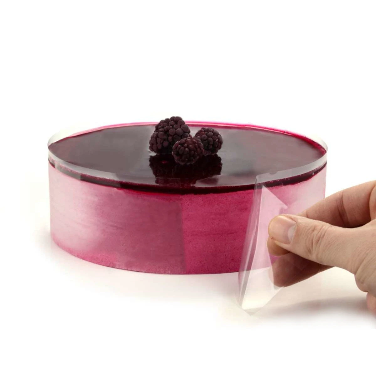 Praktische, transparente Folienstreifen zum Auslegen von Torten- und Dessertringen und Formen.