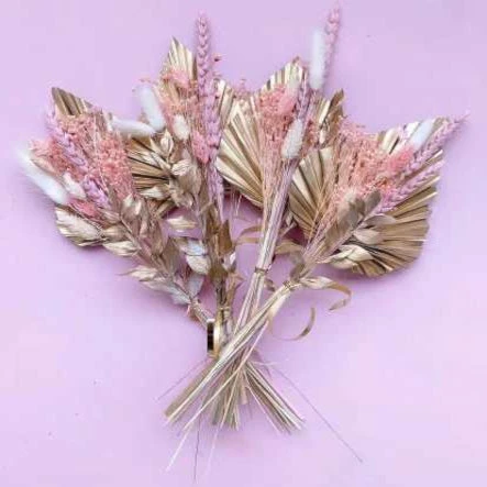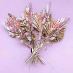 Bouquet aus Trockenblumen, mit Palmblatt in gold, mit ca. 40 cm LĂ€nge.